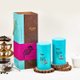 来自梨山黑森林的纯净甘露!以“霁青色”做为礼盒的主色系,象征雨过天晴的梨山黑森林天空,透过版画的表现,勾勒出茶园景致。
