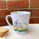 Limited edition Melbourne cup featuring koala sitting on top of the tram drinking coffee, and Melbourne skyline.