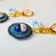 手工制作的钥匙扣,上面有可爱的招财猫和几何图案。