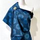 这件作品是由日本古董织布组成,沈稳的黑搭配象征长寿的的龟甲纹。毛料与丝质混纺让布料呈现高雅的光泽感,气场非常强大。