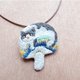 - by.dorisliu 灰白猫咪 梦幻磨菇 人手刺绣 项链+扣针 [handmade in Hong Kong]