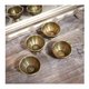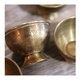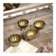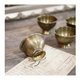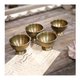 与常见厚重的欧式铜器不同,这组小杯的材质相对轻薄,给人一种精致且充满复古手工感的质地。杯身上缘环绕着一圈精巧的手工压印纹饰,朴实的图案与轻微的打磨痕迹,让每一只杯子都带有独特的匠人温度。 采用稳固的小高脚造型,线条圆润,将其放置于桌面时能增添一份仪式感和优雅气息。