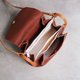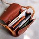 本体使用上下盖设计,以黄铜五金磁扣固定,内里大空间收纳袋X4,可收纳随身手机、钱包与小物,并附有拉链式小收纳袋X1,多样收纳空间给予便利的携带与使用。