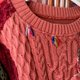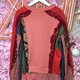 OTT只此一件•日系淡橙红毛衣假两件拼花刺绣手绣蕾丝中长上衣