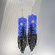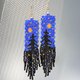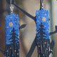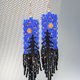 以玻璃珠和 925 纯银耳线手工编织。一块钛金属丝编织到设计中,有助于保持形状平坦。 长约 3.5 英寸,宽约 0.75 英寸。