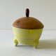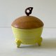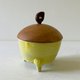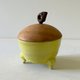 此器造型独特,有三条腿,颜色呈现耀眼的亮黄色。