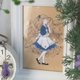 这是“沉思的爱丽丝”横向插画的明信片,背景颜色不同的三色组。无论是当作明信片寄出,还是装裱后展示,都非常时尚。