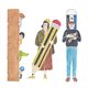 分别是拿大铅笔少女,擦胶先生跟直尺四兄弟
