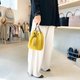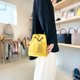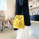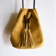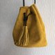 这是一款采用牛床绒面皮革制成的两用束口袋包,并带有流苏装饰。