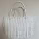 在白色编织包上,缝制了蓬松的兔子造型饰品。 这是一款耐用、容量大且方便使用的编织包。 ⚫︎尺寸 高 22cm × 宽 34cm × 深 14cm ⚫︎材质 聚丙烯、棉