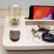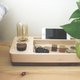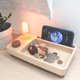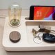 前方置物空间可以放置眼镜、钥匙、零钱等,后面沟槽(含充电线孔)可以放置6.5寸以内的手机。