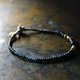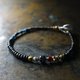 这是一款串连了古老玛瑙、血红白心古董珠、旧钦银、旧奥里萨黄铜,以及漆黑与靛蓝色珠子的手链。