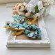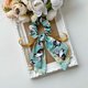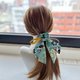 使用两款不同的美国品牌棉布搭配制作成长尾蝴蝶结、加上缎带和钉珠做成的发圈,气质浪漫,无论上班或休闲聚会都适合配戴。