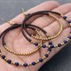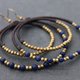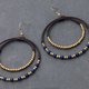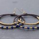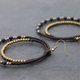 这是一款手工编织耳环,由深棕色棉质蜡线制成,与黄铜珠,黄铜线和圆形青金石编织在一起。耳环挂在天然黄铜耳在线