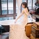 这一款礼服穿起来修身优雅又有美丽的拖尾,但礼服本身却意外地轻盈,适合海外宴客及自助婚纱的准新娘们。