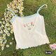 Spaghetti Strap Cream Color Play the piping, floral pattern embroidered with Mr.Willy on the chest.