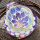 作品的背面使用了透明的红紫色(粉红色?)彩色玻璃。由于是透明作品,因此图案的外观可能会根据玻璃背面的颜色而变化。工作图像就是放在一棵棕色树上时的样子。