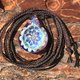 由耐热玻璃材料制成的手工吊坠,具有三维几何图案。