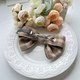 蝴蝶结下方简约地使用英文金属贴片做装饰。