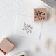 这款橡皮章描绘了一只戴着贝雷帽的小鸟,停驻在花朵旁。