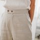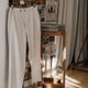 - 麻质直筒长裤,前式拉链、木质钮扣,使用漂亮麻质布料,舒适好穿,易搭配。