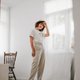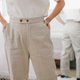 麻质直筒长裤,前式拉链、木质钮扣,使用漂亮麻质布料,舒适好穿,易搭配。