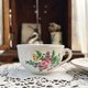 迷人的法式巧克力杯tasse à chocolat,宛如田园诗篇,杯身设计温润实用,绘有自然花卉与蝶舞图案,色调柔和.