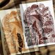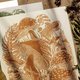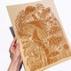 图像首先从油毡块上雕刻出来,然后使用优质彩色油单独手工压在凸版纸上。