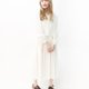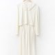【RE0809D1337】夏日本制复古甜美浪漫米白色蕾丝翻领长袖假两件古着洋装