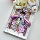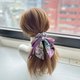 使用美国品牌棉布搭配制作成长尾蝴蝶结、加上缎带和钉珠做成的发圈,气质浪漫,无论上班或休闲聚会都适合配戴。