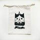 可使用手洗或机洗。若机洗请用温和的洗涤剂和冷水。建议挂着让它自然干。请不要在图案上直接熨烫,你可将束口袋翻面,并以薄布覆盖图案再进行熨烫。