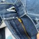 Sears Roebuck,一个拥有悠久历史的美国工装品牌。裤子采用 YKK 拉链、黄铜钮扣,左裤管下摆处有轻微刮痕。布料是棉与聚酯纤维混纺,穿着舒适。采用牢固的三线锁链缝制,是 70 年代美国制的制品,大腿处有淡淡的自然褪色。