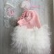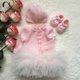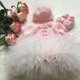 Hand made knitting clothing set for baby born girl. Can be for baptism or coming home gift for baby girl. Dress, hat, booties, gift package. There are white, pink and ivory color. A wonderfull shower gift for the expecting parents makes a really cute New Mom or New Dad gift. First birthday gift.