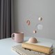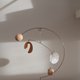 Wooden mobile handcrafted from wooden , seashell , stainless steel wire , crystal string .