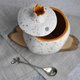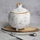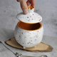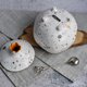 Ceramic box in the form of pomegranate fruits in white speckled color. A luxurious gift for a wedding, birthday, partner, mother, grandmother - for a connoisseur of unusual, hand-made things. The jewelry box can be used as a wedding ring holder, spice box, sugar bowl, flower pot, jewelry storage, or as a home decor.