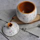 The outer side of the case is covered with white ceramic glaze, interspersed with red, black and yellow dots. Inside, it is covered with a rich yellow glaze, which are ideally combined with each other.