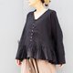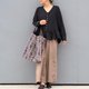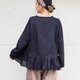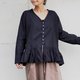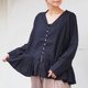 这款柔软飘逸的罩衫,扣子解开时也能当作外罩穿着。透过大量抓皱设计,营造出下摆蓬松的廓形。