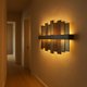 壁灯的亮点包括雕刻的装饰线条,增添了几何的精致感和光影的诠释。内置 LED 照明柔和地照亮面板,突出金属质感并为您的空间增添温暖。