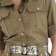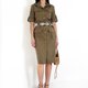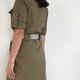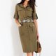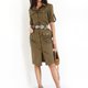 卡其色女式狩猎连身裙优雅、优雅,同时又舒适。 这款休闲中长连身裙的胸前和裙子上有口袋,衬衫领子是 Safari 风格的典型细节。 还附一条腰带