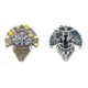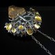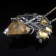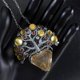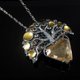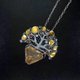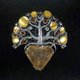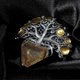 以传说的生命之树为主题制作的胸针坠饰,主石为38ct金丝钛晶。木纹质感浮雕的神木以托帕石和深橘色系黄水晶点缀,背景以枝干纹路做镂空细节处理,概念造型用24K纯金箔以烧赋工艺(热贴金Keum-Boo)技法附着于纯银主体,并硫化染黑凸显颜色对比增添复古风格。