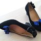 在黑色的高跟鞋上,缀上蝴蝶结,创造一整天的愉悦心情。凡购买蝴蝶结魔鬼毡高跟鞋1双,即赠2组立体精致蝴蝶结(黑色及宝蓝色)。鞋面使用特殊设计魔鬼毡布,柔顺不刮手,自由黏贴,重复使用,多变趣味。