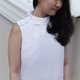DETAILS Model is 170 cm Slim fit Cotton (100% Japanese Cotton) Warm machine wash, do not bleach, do not tumble dry, high iron S - Bust: 88 cm | Armhole: 45 cm | Waist: 85 cm | Length: 58 cm M - Bust: 92 cm | Armhole: 47 cm | Waist: 89 cm | Length: 59.5 cm DESCRIPTION We reworked this white sleeveless top with side collar details and a side slit. Just enough tweaks to make this essential unexpectedly new.