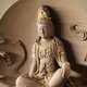 水月观音-7寸(石金色),为波丽材质打造,配合华贵不凡的描金技艺,呈现纷华盛丽之姿。观音面部庄严慈祥。圆轮背光,福德圆满,最能彰显护佑众生的姿态。