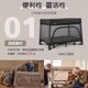 ●三层网状床垫,不闷热透气性佳。床罩可拆下机洗。附赠有机棉制的床包。皆通过ASTM D737测试,安全又安心