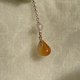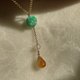 此款无烧色小绿花橙水滴翡翠项链底质油胶润 因其底质细致 配戴出优雅气质