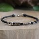 这条手链展现了传统风格,由天然蜡绳制成,蜡绳采用棉绳制成,经过蜡处理使其耐用且环保。每颗银珠和挂钩均为高品质的泰银,纯度高达95-99%,远超过92.5%的标准纯银,并且全手工编织。