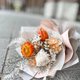 1.材质:灯笼果(或以橘色手工花代替)、不凋绣球花、满天星、卡斯比亚、法国白梅、其余由设计师搭配花材。
