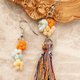 用单根绣花线编织的小花不对称。 配有摆动的流苏。
