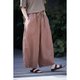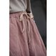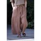 全松紧腰头出抽绳,两个斜插大口袋,巨大的袋袋,美丽的分割线条,利落干脆。转个身,一个带着反折盖儿的方口袋。腰下是自然的裤管,宽松但渐收,形成自然的萝卜裤型。