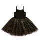 深深浅浅的粉色已非小公主们的唯一选择,沉稳酷帅的暗夜黑色现在异军突起!触感柔软透气的沉稳黑色上半身,搭配轻飘飘又细致的黑色蓬蓬纱裙,满布其上的不规则图案的金葱印花,在灯光下交织闪耀着亮眼的光芒,有如出现在黑色夜空中盛大壮丽的金色绚烂烟火,让人看得目不转睛!转上一圈,轻软的纱裙随风飘起,小女孩儿一穿上身就再也不想脱下来了!